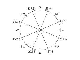 Switch points between the 8 cardinal directions, these switch points are ± 10° |
