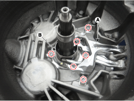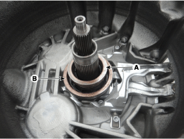 Check the applied state of grease on input shaft spline part (A) before installing the dual clutch assembly. If there is no grease on input shaft spline part, should apply the grease on each spline end to 10mm.