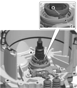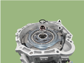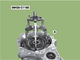 Install the SST (No.:09430-2A240) on the support bearing within the dual clutch assembly (A).