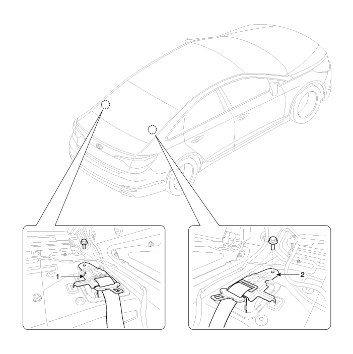 Components and Components Location Components 1. Front seat belt retractor2. Height adjuster3. Rear seat belt buckle [RH]4. Rear seat belt buckle [LH]5...