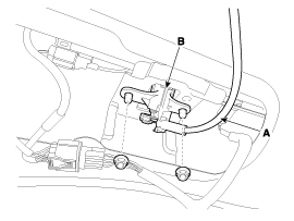 Remove the trunk lid key holder (B) and disconnect the trunk lid key holder cable (A).