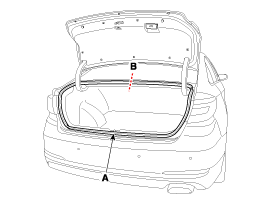 After loosening the mounting screw and clips, then remove the trunk lid trim (A).
